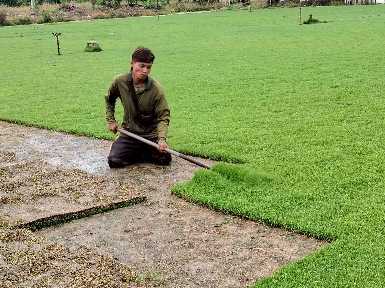 5. ปูหญ้าที่ต้องการลงในพื้นที่