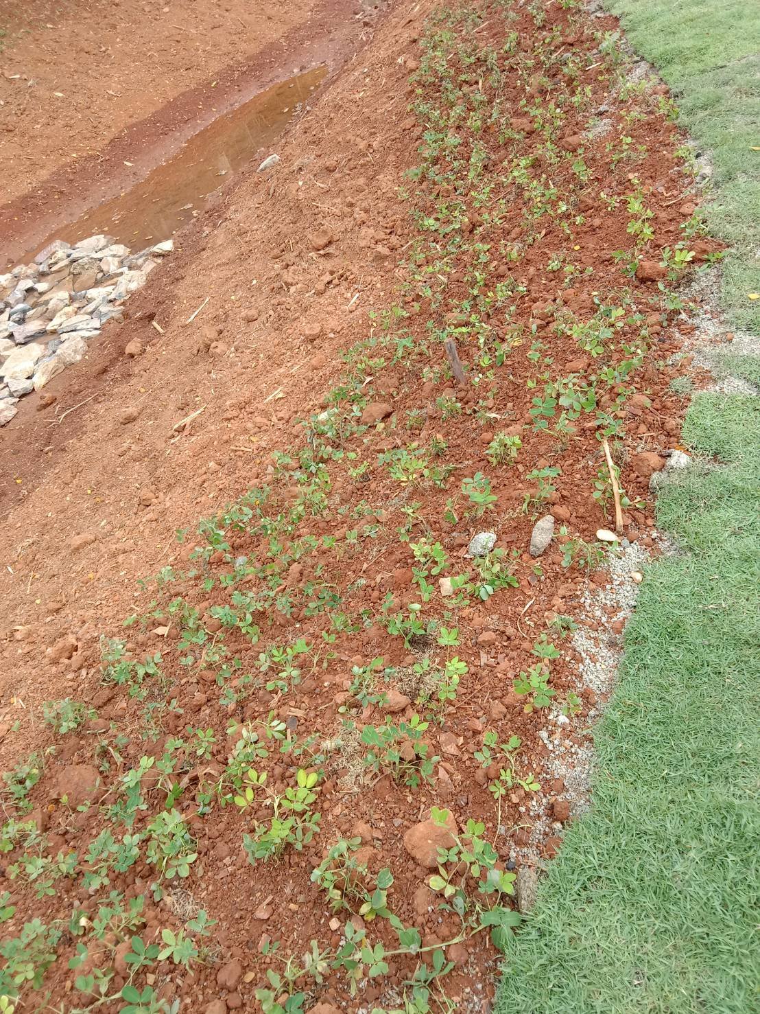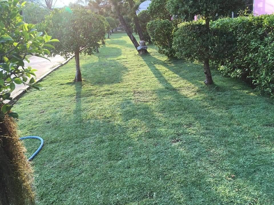กำจัดวัชพืช งานนี้วัชพืชแน่นมาก ลงทรายปรับพื้นที่ และปูหญ้า