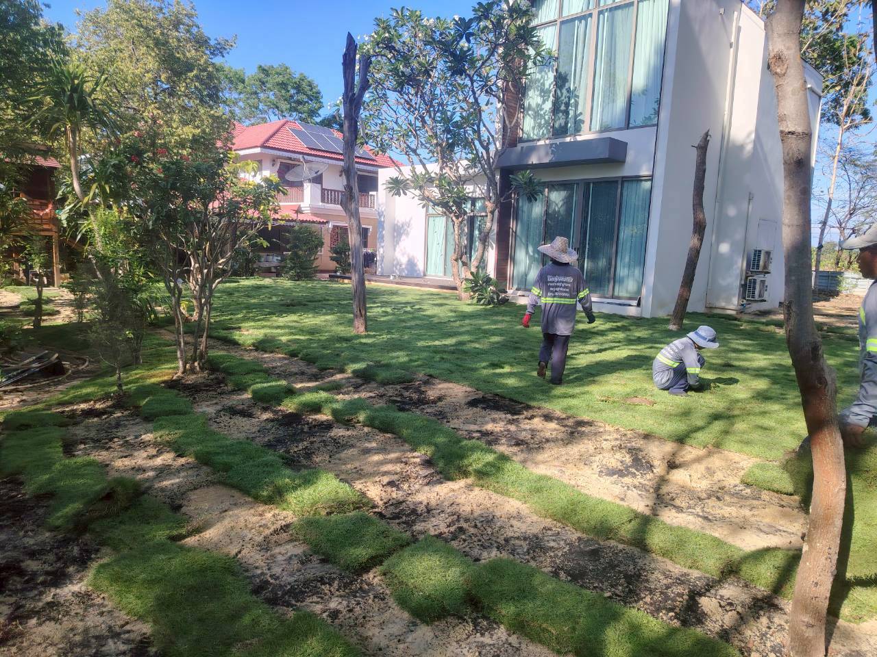 หมายเหตุ หน้างานต้องเตรียมระบบน้ำให้พร้อมในวันที่ปูหญ้า และต้องมีการรดน้ำให้ชุ่มฉ่ำวันละ 3-4 ครั้ง ในช่วง 5 วันแรกค่ะ